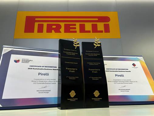 2025年12月23日。在中国欧盟商会举办的第九届可持续商业大奖(SBA)评选中,倍耐力荣获气候行动奖与智能技术赋能奖两项殊荣。这些奖项充分彰显了倍耐力在全球范围内对可持续发展与创新的坚定承诺,也肯定了其在中国开展的重要业务与卓越实践。