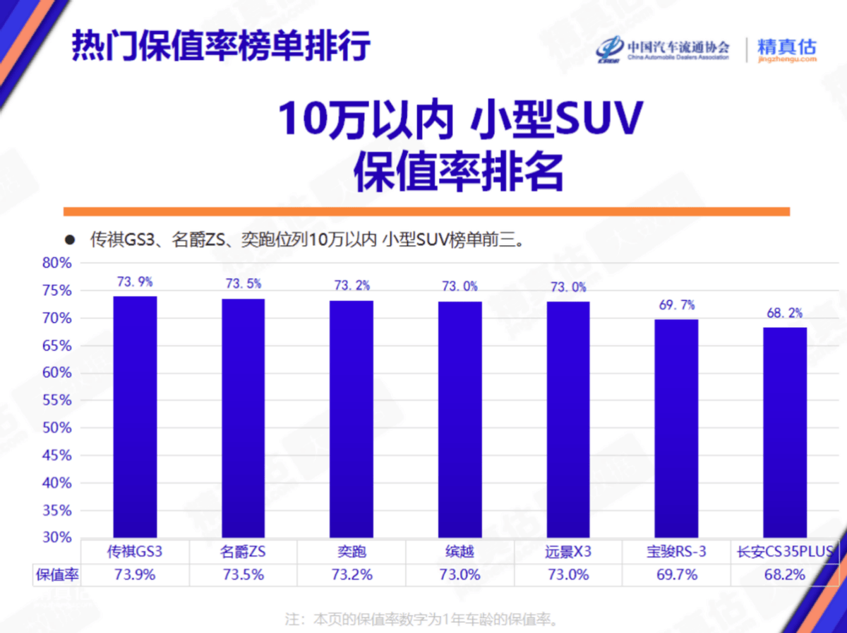 影速和缤越均是小型SUV市场的品质标杆,常年稳居质量榜单前列,在中国汽车流通协会与精真估发布的《10万以内小型SUV保值率榜》上登顶榜首,缤越则位列第四。
