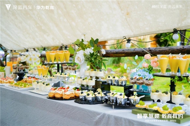 为了丰富大家等待试驾的漫时光,深蓝汽车为大家准备了精美的茶歇、BBQ晚宴,花牌DIY,以及各种玩游戏赢好礼的氛围互动。通过丰富多样的现场体验和氛围营造、订车锁单抽奖等环节,将品牌文化渗透于休闲场景,充分展现深蓝品牌周到细致的服务理念,让各位来宾度过了一个欢乐而丰富的下午时光!